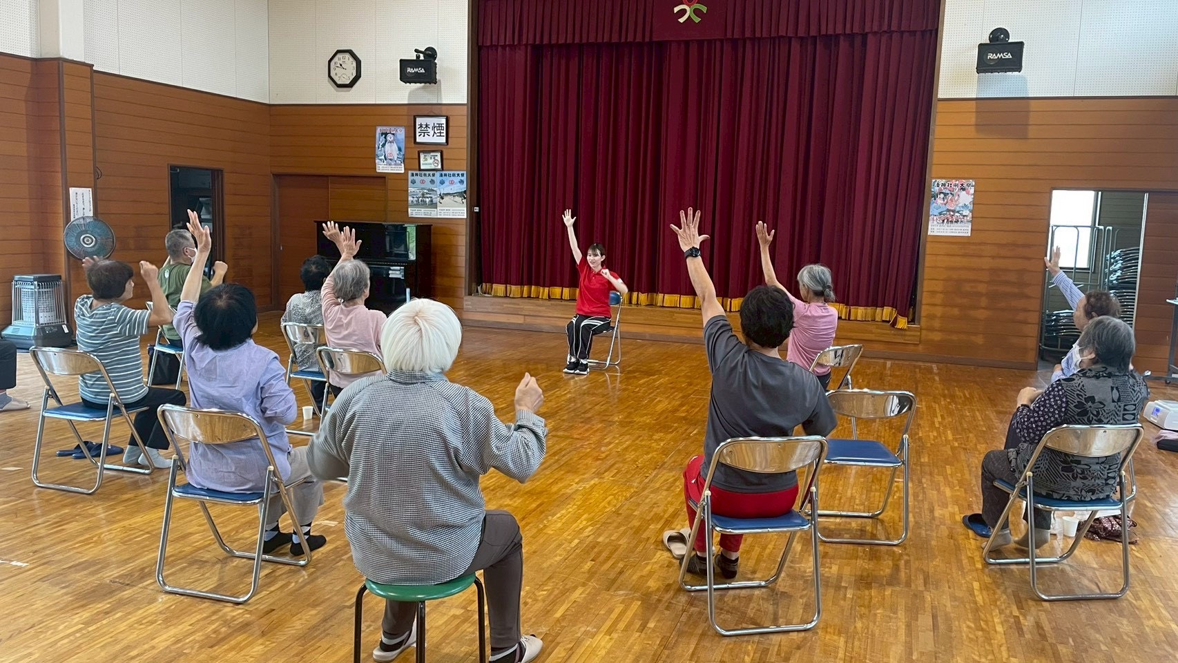 地域の集まりやイベントなどで、看護師、健康運動指導員、豊富な経験と実績を持つプロが日常生活の中でできる運動や健康体操を指導する取り組みです。